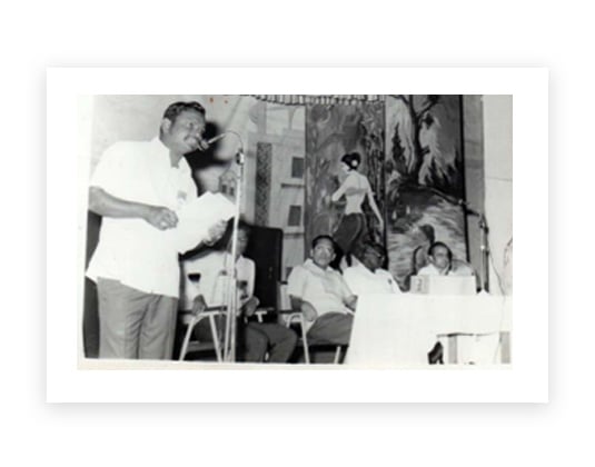 In the service of Noble professionals - Blood Donation Programme, Thanjavur Medical College & Hospital Thanjavur. Dr. Kandappalanivelu, MD., DCH., Welcoming the members, TMC Auditorium, Thanjavur in the year 1981 -82 Hosted by National Pharma