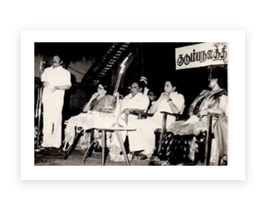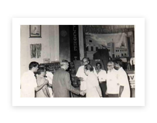 Family welfare Service conducted by Mannargudi Panchiyat Union on 28-03-1984 (R to L) 1) Dr. E. M. Saraswathi., MS., Dean, TMCH, 2) Mr. Satpathy IAS, Thanjavur District Collector 3) DMO- Nagapattinam, Dr. Vijaya MD., DGO Prof. of Gynecology , TMCH & RMH and others.